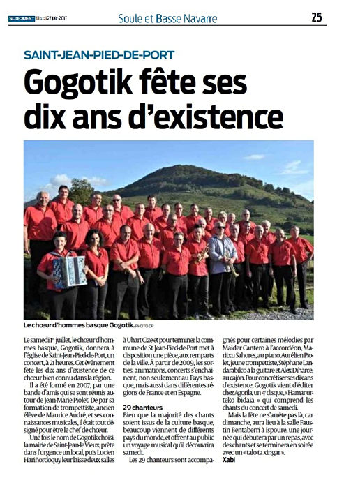 Notre chœur d'hommes basque a été souvent mis à l'honneur dans plusieurs revues de presse locales, soulignant notre passion pour la musique et la culture traditionnelle Les articles mettent en avant nos performances vibrantes et notre engagement à préserver le patrimoine musical basque. Rejoignez-nous pour célébrer ensemble la richesse de notre héritage musical !